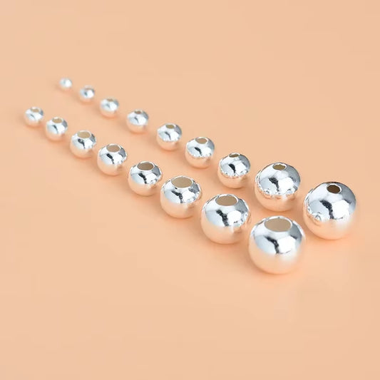 20PCS 925 Sterling Silver round Bead Accessories Handmade DIY Material Bracelet Necklace Jewelry Fashion Women