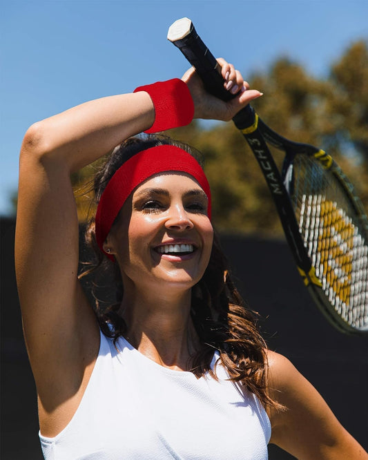 Sweatbands Set, Moisture Wicking 2 Wristbands and 1 Headband, Breathable Terry Cloth Athletic Bands for Basketball, Tennis, Yoga, Gym, Sweat Bands for Costumes and Cosplay