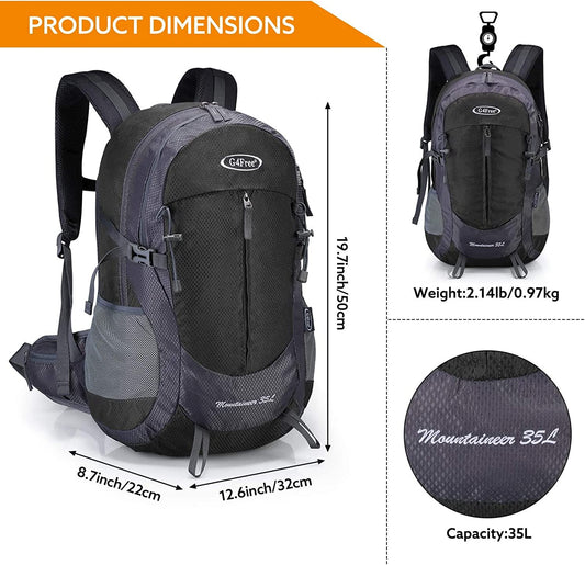 35L Hiking Backpack Water Resistant Outdoor Sports Travel Daypack Lightweight with Rain Cover for Women Men (Black)