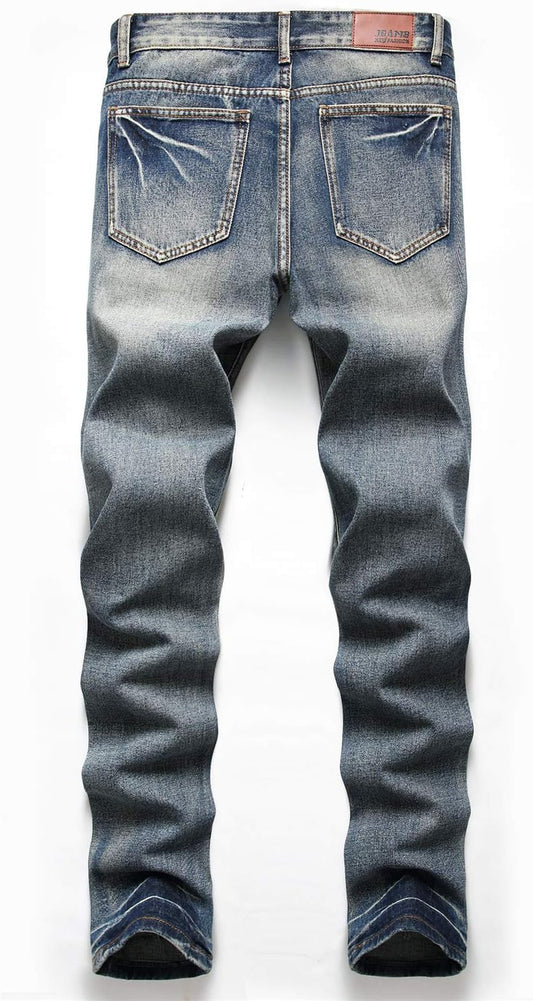 Stylish Men's Ripped Distressed Straight Fit Denim Jeans - Trendy Washed Look