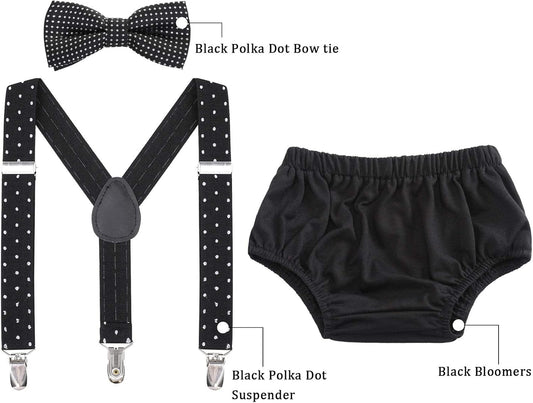 Adorable Baby Boys Cake Smash Outfit - First Birthday Suspenders, Bow Tie & Bloomers Set