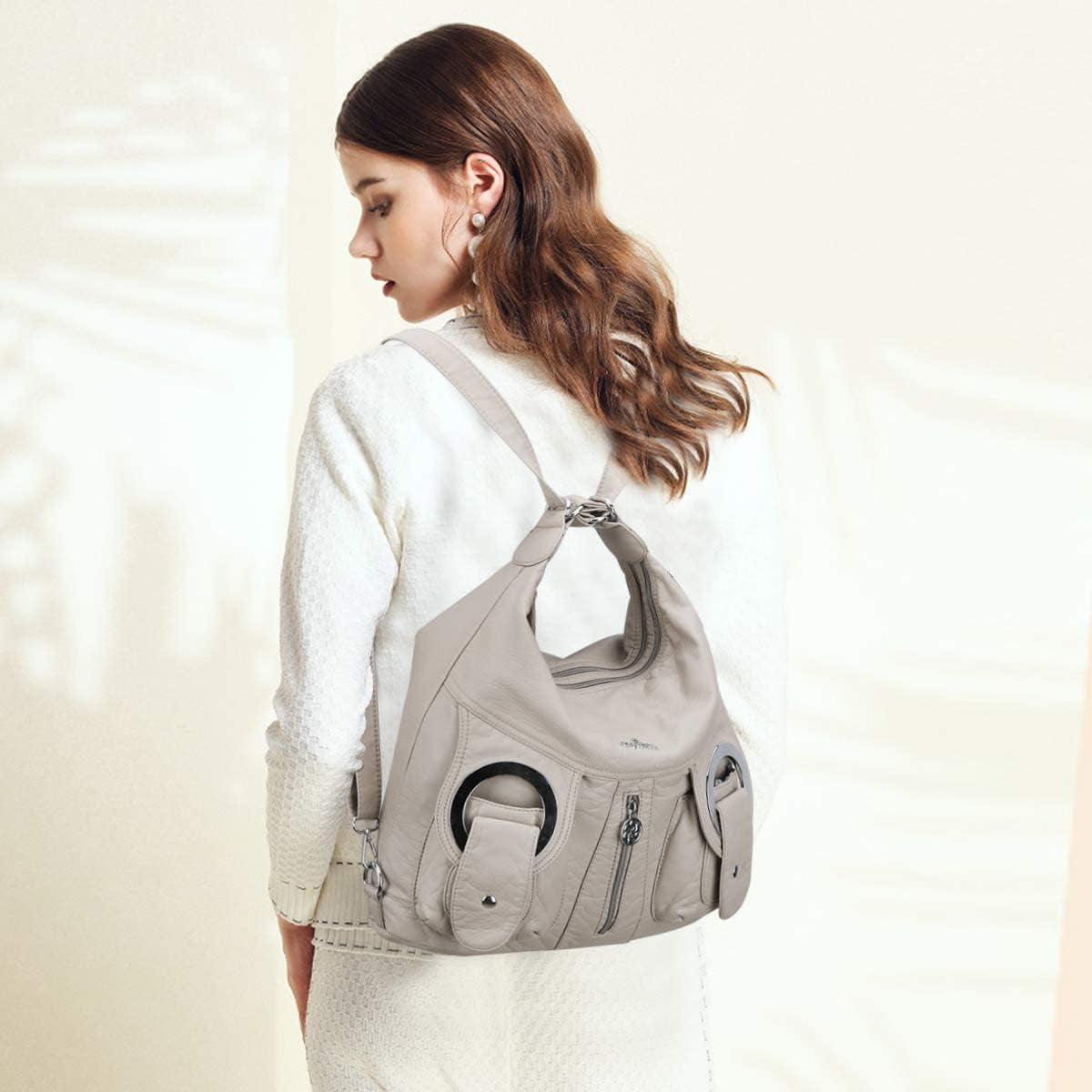 Angel Kiss Women's Multi-Pocket Hobo Shoulder Bag - Stylish Washed Soft Leather Tote for Everyday Use