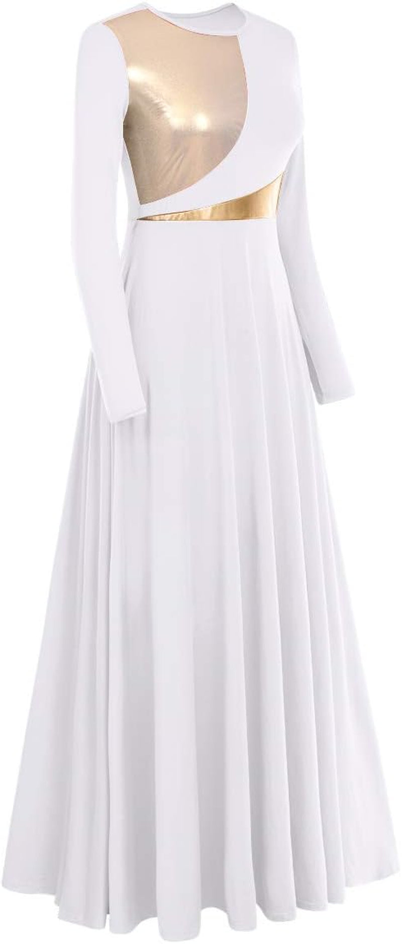 Elegant Metallic Bi-Color Long Sleeve Praise Dance Dress - Perfect for Worship and Lyrical Performances