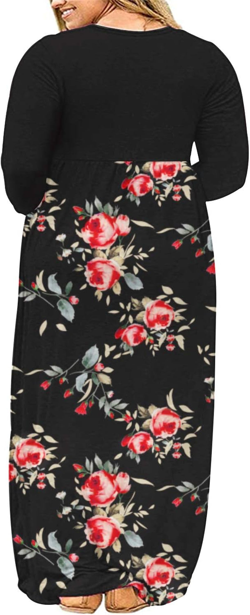 Women'S Plain plus Size Long Sleeve Loose Curvy Long Maxi Dresses with Pockets(18W,Black Rose Black)